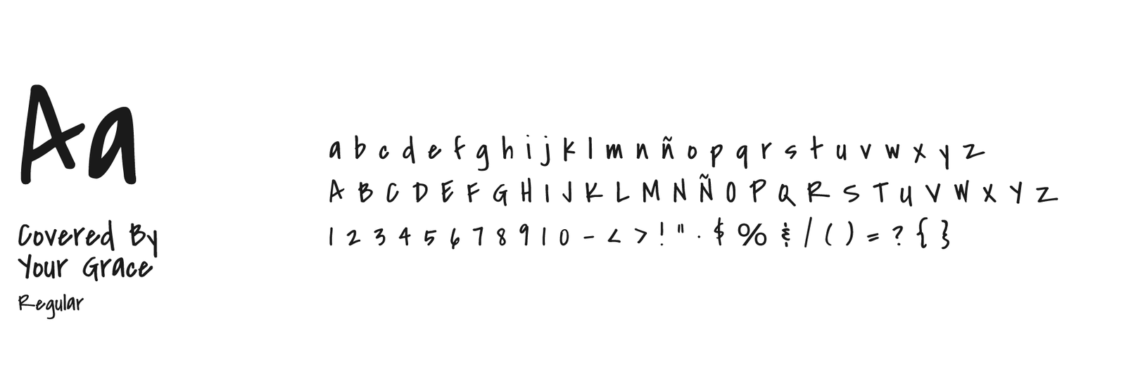 La tipografía Covered by your grace nos permite jugar un poco con los visuales, dándole un tono juvenil y divertido. Se recomienda su uso moderado aplicándose solamente a textos cortos de enganche.